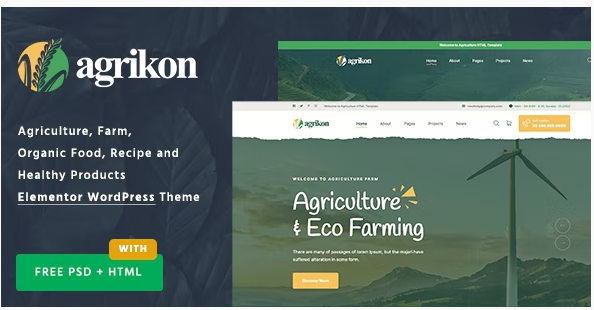 Agrikon – Responsive Agriculture, Organic Food, Farm, Organic Shop / Store, Grocery and Livestock Elementor Based WooCommerce WordPress Theme Builder