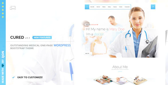Cured is a Clean & Responsive One Page WP theme built on Bootstrap 3 for Individual Professionals or Digital Agencies. Mobile Touch optimized. Theme contain many tools, integrated with WordPress administration interface to allow easy website building and content management. Thanks to responsive design it is going to look awesome on any device!