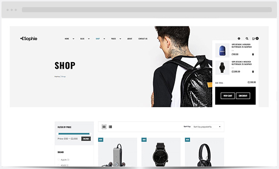 Minimal WooCommerce Theme – Sophie is a responsive multipurpose WooCommerce theme. This clean, modern and minimal design gives a particular emphasis on selling and eCommerce stores. It is perfect for clothing, fashion, accessories, bags, shoes, watches, sports, gadgets, and other.
