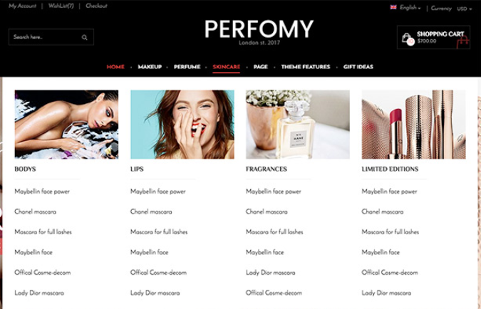 Perfomy is a WordPress theme to create a website for online store especially related to perfumes, jewelry and accessories. Perfomy comes with a shop to offer different type of layouts like products carousel, products with filteration, awesome promotion banners etc. The shop is built with Woocommerce the popular and flexible plugin in eCommerce. Perfomy is a clean responsive WordPress theme comes with a homepage layout and different shop page layouts.