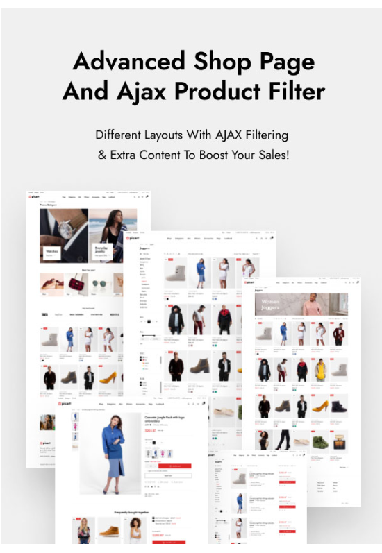 Picart is a WooCommerce WordPress theme designed for shopping online stores. Picart includes a lot of pre-designed layouts for home page, product page to give you best selections in customization. Picart is built based on the Fashion Store website. But Picart is also suitable for other eCommerce websites such as medical, electronic, organic, sneaker, shoes, glasses, accessories, supermarket … or anything you want. Picart is a professional WordPress theme. It comes with a lot of features and variations: Responsive Layout, Mega Menu, WPBakery Page Builder, Awesome Slider Revolution, Wishlist, Frequently Bought Together, Compare, Ajax Search, Ajax Cart, Single Ajax Add To Cart, Shop Load More/Infinite Scroll, Easy One Click Demo Import, … and so much more. Easy to use, powerful and flexible. These are the words that we talk about Picart. You will be able to build your website in a snap without coding knowledge. Are you ready to get it for now?